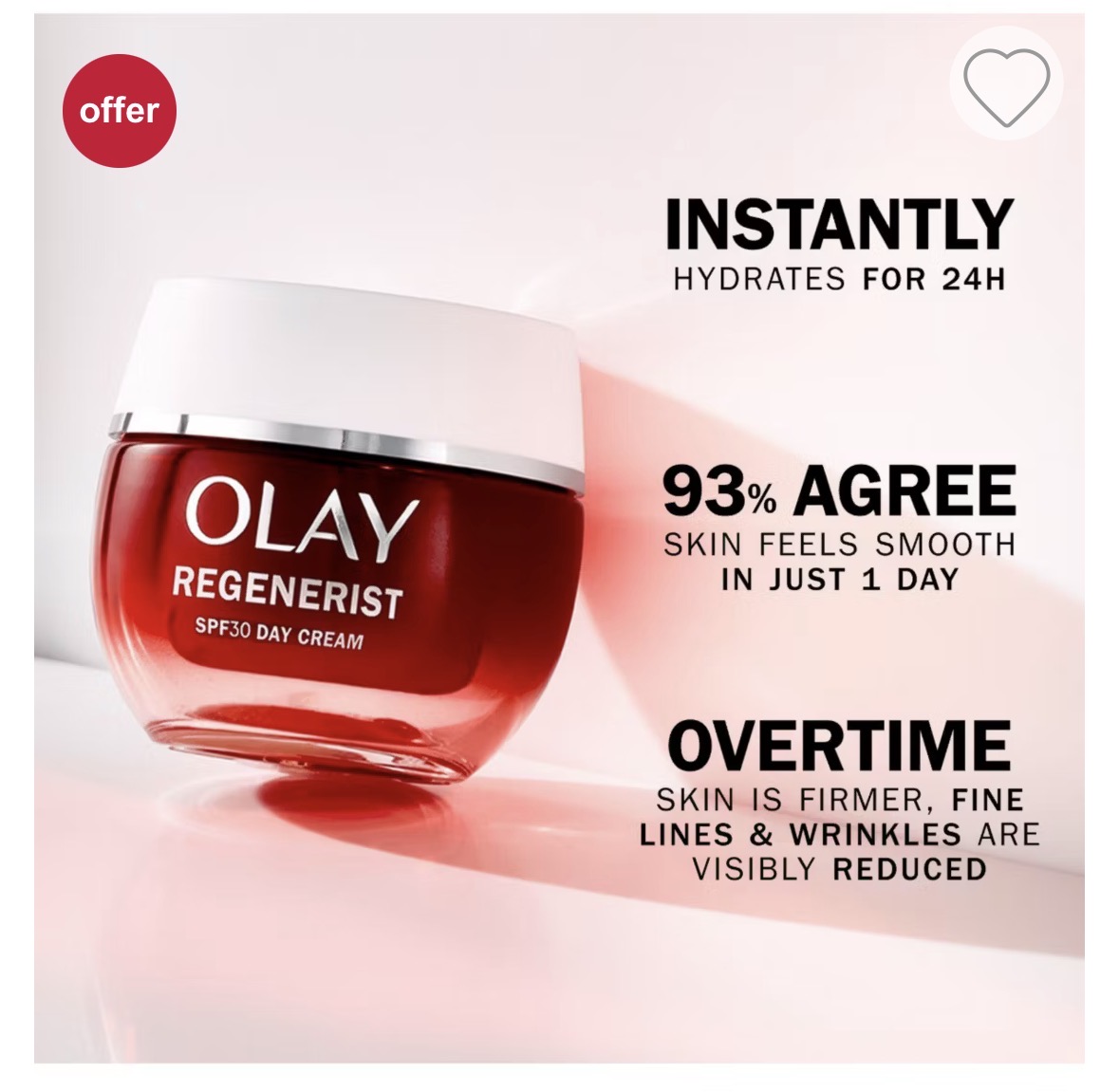 50Ml x 2 – Olay Regenerist Day Face Cream SPF30 Active Firming Moisturiser with Niacinamide and Peptides